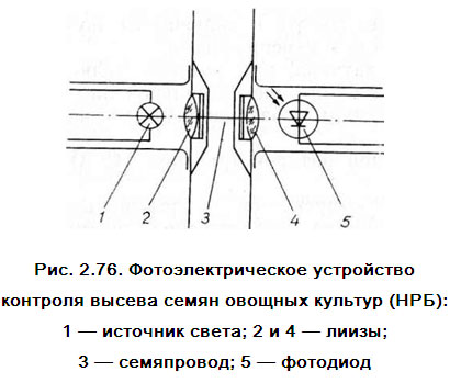 Из приведенных материалов следует, что устройства контроля высева с использованием фотоэлектронного эффекта, наряду с преимуществами (высокая чувствительность, малая инерционность, быстродействие, отсутствие влияния на траекторию движения семян), имеют ряд существенных недостатков. К ним можно отнести прежде всего низкую помехозащитность от запыления источника света и фотоприемника, недостаточную механическую прочность элементов системы, а также различие конструкции датчиков для регистрации мелких и крупных семян, т. е. отсутствие универсальности.