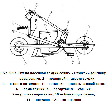 Рис. 2.27. Схема посевной секции сеялки «Стэнхей» (Англия).