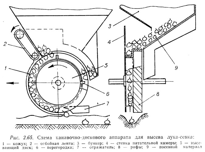 Рис. 2.65. Схема каналочно-дискового аппарата для высева лука-севка.